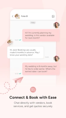 เมื่อคุณพบสิ่งที่ตรงใจ **Bridestory** ช่วยให้คุณเชื่อมต่อโดยตรงกับผู้ให้บริการได้อย่างง่ายดาย ไม่ว่าจะเป็นการส่งข้อความ สอบถามรายละเอียด หรือรับใบเสนอราคาผ่านการแชทและอีเมล การตัดสินใจเลือกผู้ให้บริการที่เหมาะสมที่สุดจึงเป็นเรื่องง่ายกว่าเคย นอกจากนี้ คุณยังสามารถมั่นใจกับการจองและชำระเงินอย่างปลอดภัยผ่าน **Bridestory Pay** พร้อมรับสิทธิประโยชน์จากดีลและโปรโมชั่นสุดพิเศษที่อัปเดตอย่างต่อเนื่องใน **Bridestory Store, Deals, และ Flash Deals** ซึ่งมีส่วนลดสูงสุดถึง 40% และข้อเสนอคืนเงิน ให้คุณประหยัดค่าใช้จ่ายได้มากขึ้น และเพื่อให้แผนงานของคุณมีความยืดหยุ่น **Bridestory** ยังมีตัวเลือกการเลื่อนวันจัดงานสำหรับผู้ให้บริการบางราย (Flexi Reschedule) เพื่อความสะดวกสบายที่เหนือกว่า