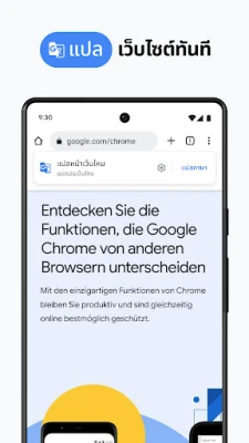 ปลดล็อกประสบการณ์ท่องเว็บที่เหนือกว่าด้วย Chrome ประตูสู่โลกอินเทอร์เน็ตที่ขับเคลื่อนโดย Google สัมผัสความรวดเร็วในการค้นหาข้อมูลและไขทุกข้อสงสัยได้อย่างง่ายดาย ไม่ว่าจะเป็นการใช้เสียงเพื่อค้นหาโดยไม่ต้องสัมผัส หรือการใช้ Google Lens สแกนสิ่งรอบตัวด้วยกล้องเพื่อรับข้อมูลเชิงลึก นอกจากนี้ Chrome ยังช่วยให้คุณก้าวข้ามกำแพงภาษาด้วย Google แปลภาษา ให้คุณเข้าถึงเนื้อหาบนเว็บไซต์กว่า 130 ภาษาได้ในคลิกเดียว เปลี่ยนทุกการสำรวจให้ไร้ขีดจำกัด